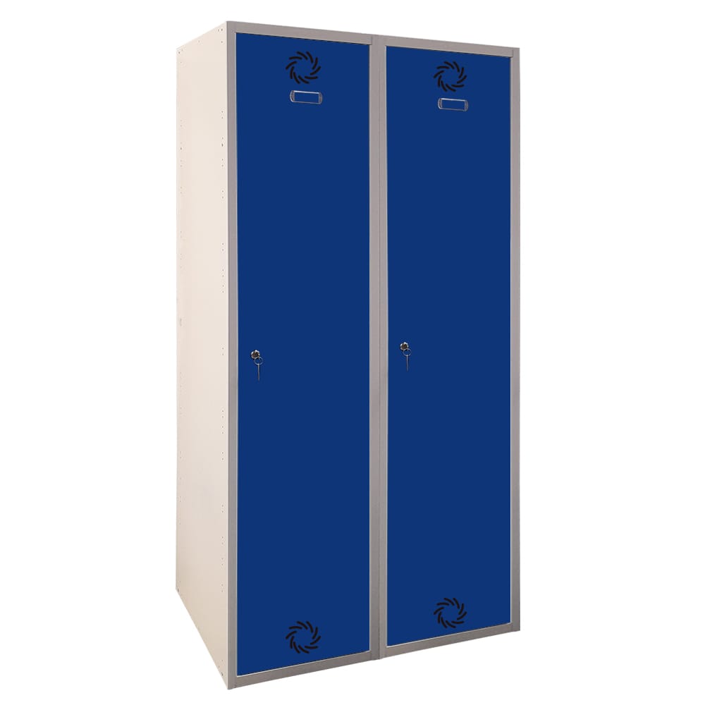 Taquilla metálica de 2 cuerpos, 1 puerta y 400 mm de anchura por columna. Fabricada en acero reciclable, combina resistencia, funcionalidad y sostenibilidad para un uso intensivo.