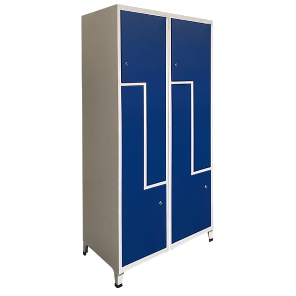 Taquilla metálica soldada de 2 cuerpos, 2 puertas en L y 400 mm de anchura por columna. Fabricada en acero reciclable, combina resistencia, funcionalidad y sostenibilidad para un uso intensivo.
