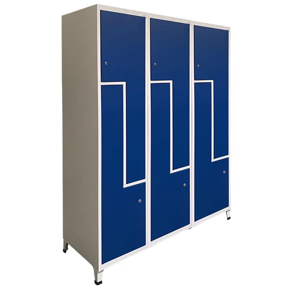 Taquilla metálica soldada de 3 cuerpos, 2 puertas en L y 400 mm de anchura por columna. Fabricada en acero reciclable, combina resistencia, funcionalidad y sostenibilidad para un uso intensivo.