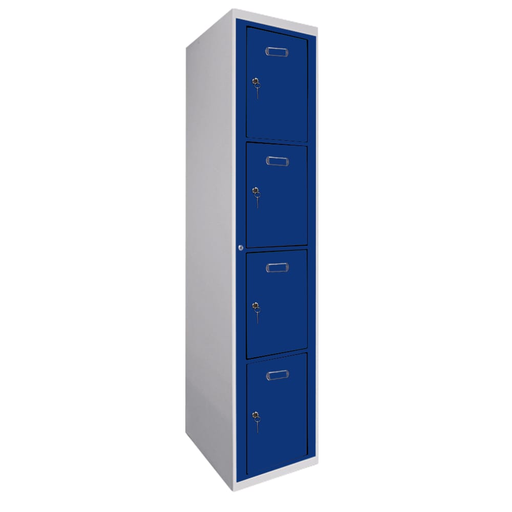 Taquilla metálica soldada multipuerta con 4 puertas enmarcadas por cuerpo. Diseñada para maximizar el almacenamiento en espacios reducidos, combina resistencia, accesibilidad y estructura modular en acero reciclable.