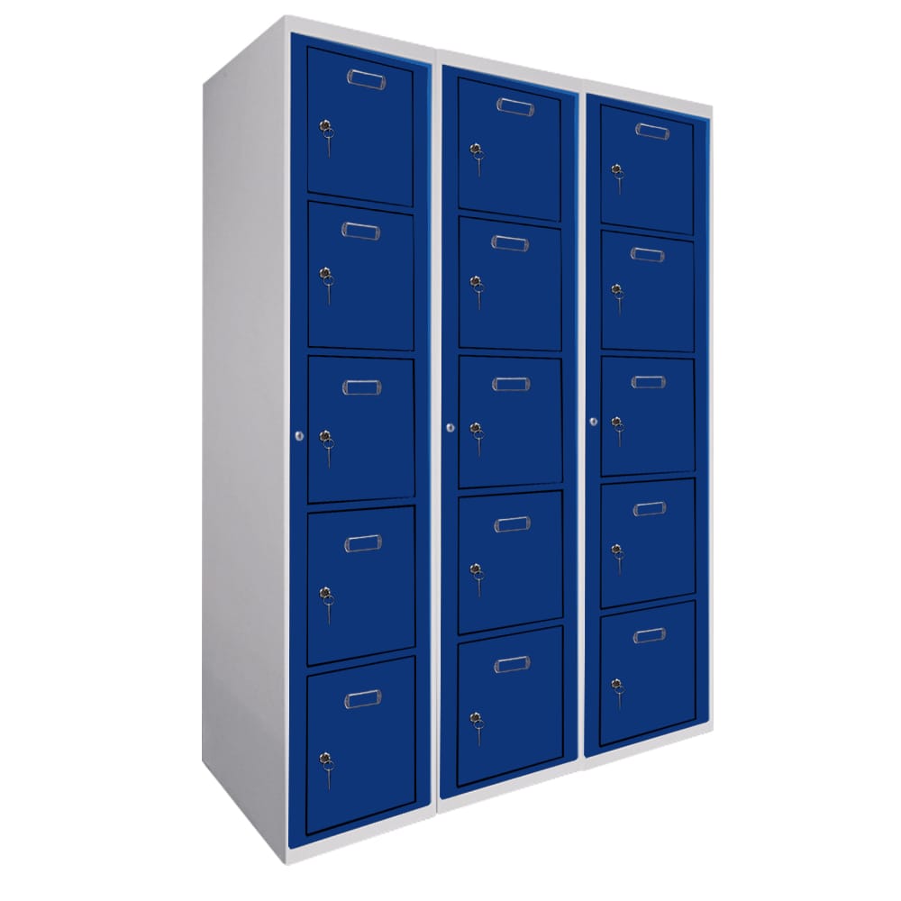 Taquilla metálica soldada multipuerta con 5 puertas enmarcadas por cuerpo. Diseñada para maximizar el almacenamiento en espacios reducidos, combina resistencia, accesibilidad y estructura modular en acero reciclable.