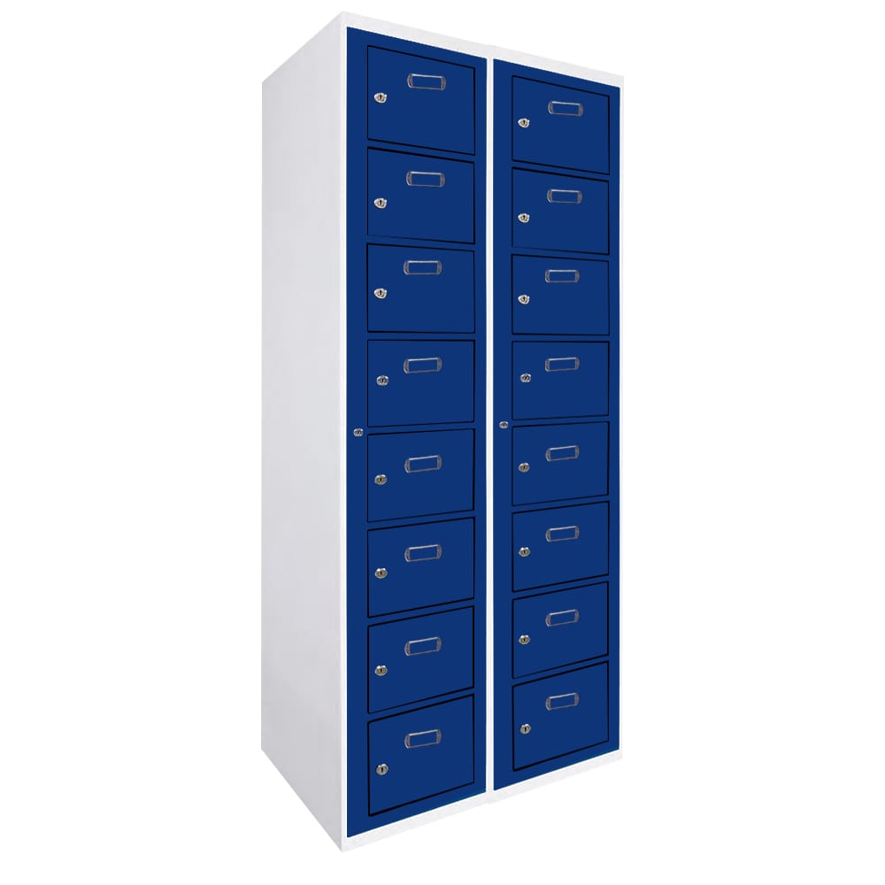 Taquilla metálica soldada multipuerta con 8 puertas enmarcadas por cuerpo. Diseñada para maximizar el almacenamiento en espacios reducidos, combina resistencia, accesibilidad y estructura modular en acero reciclable.